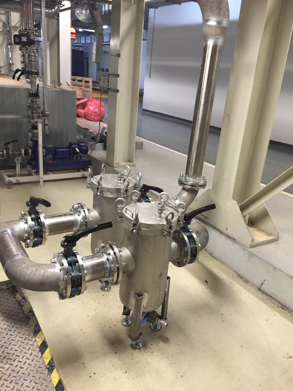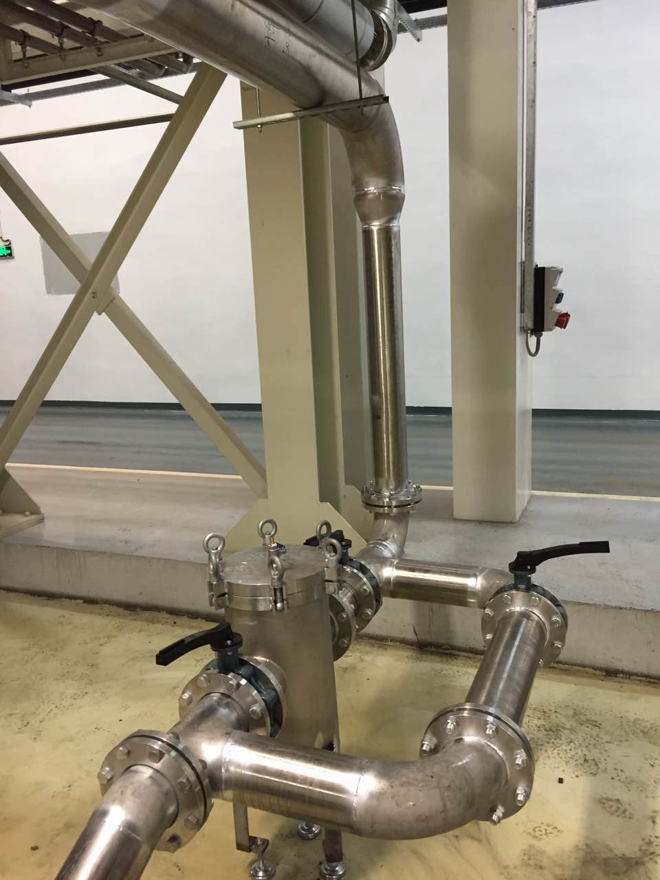 將原有DN150管路斷開,接入三通,并入藍(lán)式過濾器;